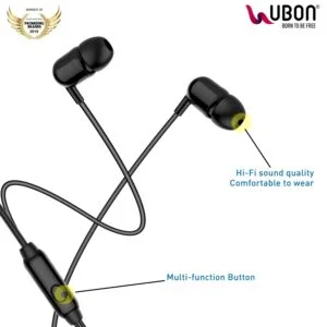 UBON GS-02 3.5mm in-Ear Earphone with Mic Clear Sound Audio & Dynamic Bass Plug-in Earbuds for Mobile Smartphone Tablet Laptop (Black)