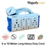 Bigpalycoan 2 Way Electric Multi Outlets Power Strip Spike Guard with Individual Switches Heavy Duty 2 metre Cord (Max. Rating 1200W- 230V) PVC Blue/Green-White (5 Meter Cord)
