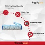 Materials: Bigpalycoan extension board with individual switch is built with ISI marked 6A sockets attached with ISI marked individual 6A switches. This extension board is made of unbreakable white PVC. This contains 3 core pure copper wire of 0.75 mm ISI marked full gauge. Internal wiring is 0.75 mm single core. This power cord is attached with 6A ISI 3 pins plug. Ready to use. Dimension: The dimension of the product is 11.5 inch X 3 inch X 2 inch. We are Indian & Manufacture for India. Why choose the Bigpalycoan Extension Box ? Handcrafted products Strong internal wiring High load bearing capacity. Easy and low cost to repair Mounting holes on the back can mounted on wall with Screw and nylon plug ISI marked Wire with ISI 3 pin Power plug. Highly recommended product with limited technical mastery An Popular Branded product 10+ years old brand of West Bengal. 1000+ Extension Boards to choose from Genuine 6 months replacement warranty. Claim it from the brand website. MADE IN INDIA