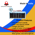 2. Uses: This Indrico extension board with individual switch protects you and your children from electrical shock. This extension board anchor is perfect choice for computer, refrigerator, electric fan, electric iron, mixer grinder, TV, laptop, mobile charging or any other home appliances under 1200 watts.